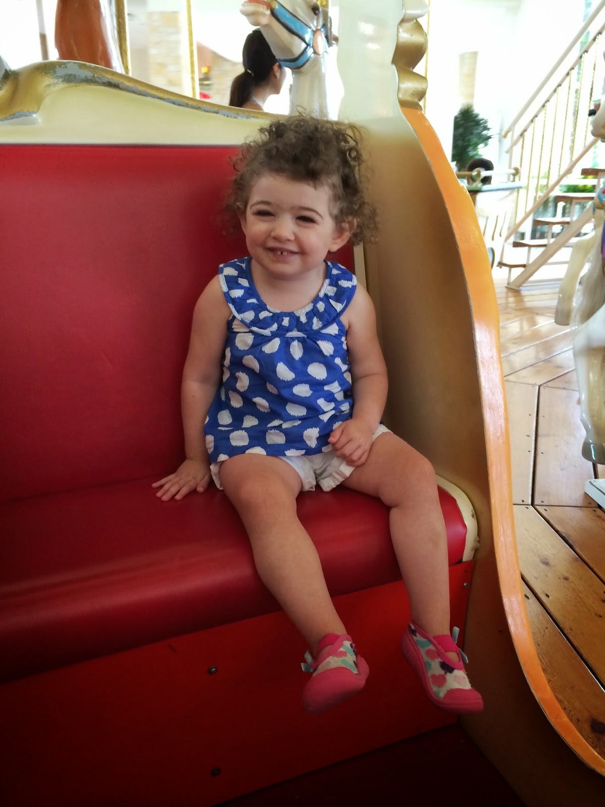 First up. . . trip to the carousel! (You might notice this replaced a trip to the beach. It was just too hot for such things. An indoor activity seemed much more appealing when it is 100% humidity and 100 degrees outside.) We knew Clara would either love or hate the carousel. No middle ground. And thankfully she LOVED it. Y'all, seriously she LOVED it. She was laughing and smiling and having the time of her life. She rode four times and was then fussing and mad when we had to leave. Memorial City Mall Carousel for the win!